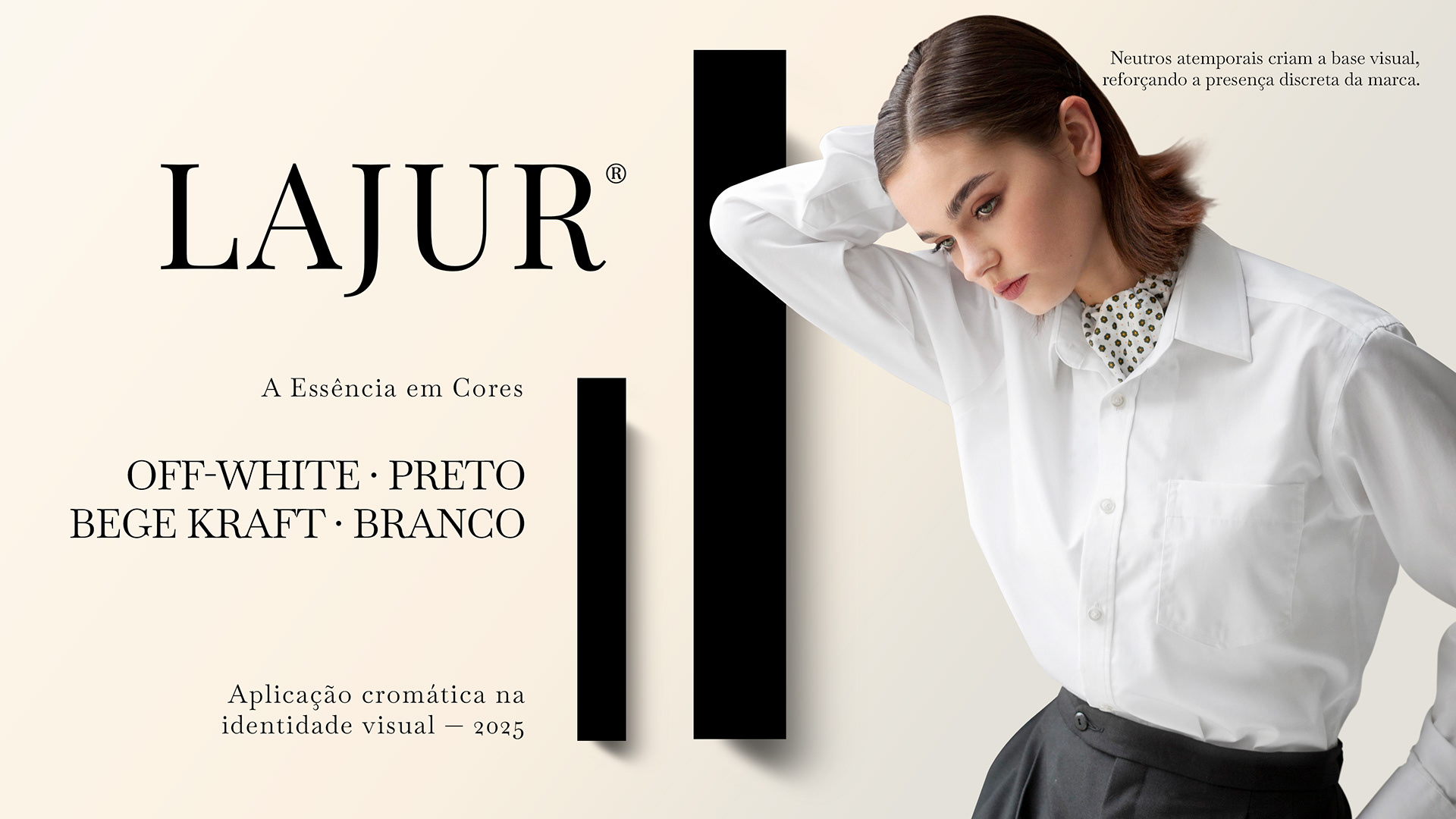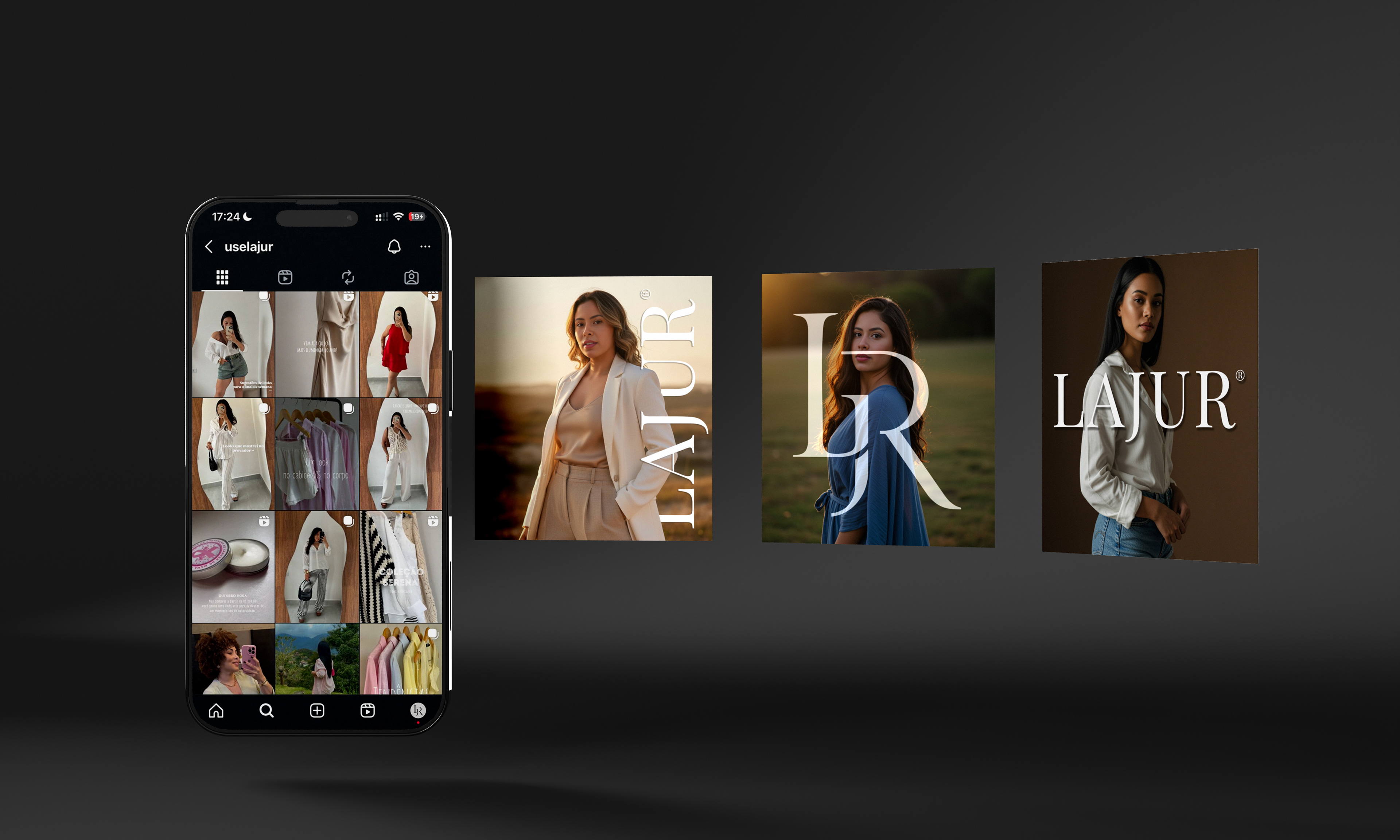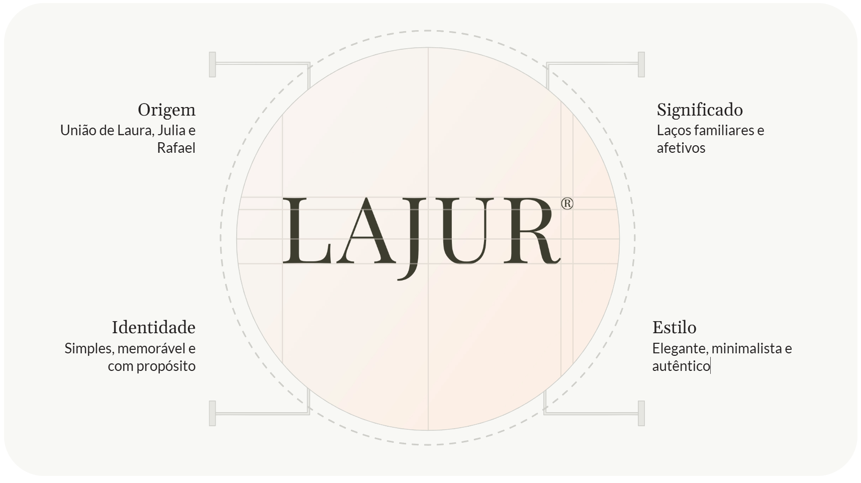 A identidade visual da LAJUR foi desenvolvida a partir da união das iniciais L, J e R, traduzindo conexão, minimalismo e autenticidade. O projeto inclui monograma, sistema tipográfico, paleta, aplicações e um hero layout que reforça a estética elegante e discreta da marca.